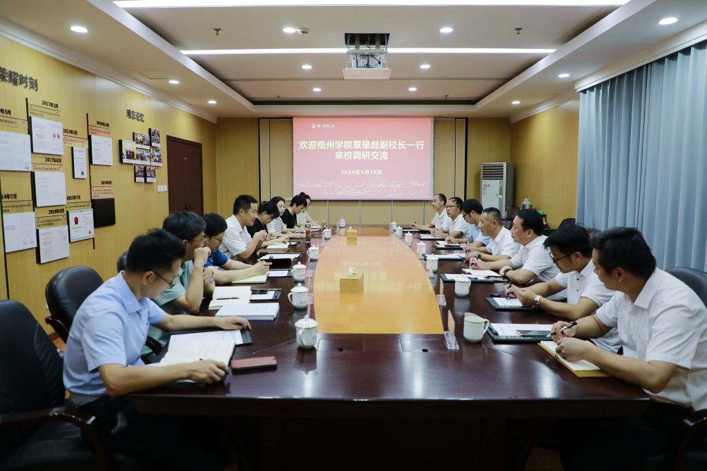 9月19日,梧州學(xué)院副校長覃雄彪帶隊(duì)來校調(diào)研。我校副校長徐愛俊出席座談會(huì)。