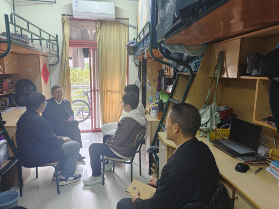 在走訪學生寢室時,吳家勝詳細聽取了同學們在學習、生活、科研和就業等方面的情況和困惑。吳家勝表示,個人發展與學校發展是一個命運共同體,學校會不遺余力培養每一位學生,同學們要志存高遠、敢擔當作為、做出學術成就,相互影響、相互促進;要做好示范、樹立優秀榜樣,帶動身邊同學和班級共同形成良好的學風,養成良好的習慣;要多思考、多實踐,全方位、多角度看待社會現象和社會問題,形成自己獨特的思維邏輯。
