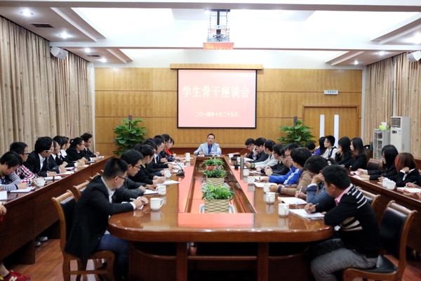 10月29日下午,學校召開學生骨干座談會。校黨委副書記余杰出席座談會,校研工部、團委負責人,各二級學院分團委書記、學生會主席、校級學生組織主席團成員參加座談會。座談會由校團委主持工作副書記侯錫銘主持。
