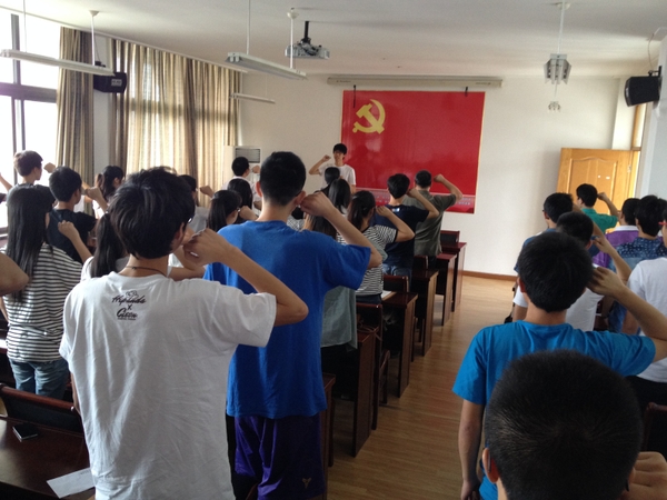 在嘹亮的《國際歌》之后,全體黨員在嚴肅和認真的氣氛中,重新學習了黨章,深刻體會到了作為一名黨員的權利和義務,進一步明確牢記了“為共產主義事業奮斗終身”的入黨誓言。全體黨員在黨員代表的帶領下,面對鮮紅的黨旗,高舉右拳,鄭重宣誓。宣誓結束后,學生老黨員談了自己作為一名共產黨員的成長心得和學習體會。新黨員代表發言表示,在將來的學習和工作中履行作為一名黨員的職責,誓守入黨承諾,發揮好模范帶頭作用,帶領身邊的人一起進步。