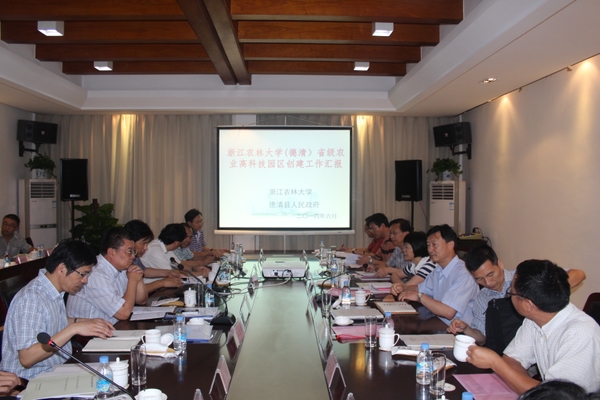 6月26日上午,浙江省科技廳副廳長曹新安帶領專家組,對浙江農林大學德清省級農高園創建工作進行評估論證。論證會由科技廳農村科技處處長葉翠萍主持。副校長鮑濱福、金佩華,湖州市及德清縣相關領導和我校相關學院、部門負責人參加了論證。
