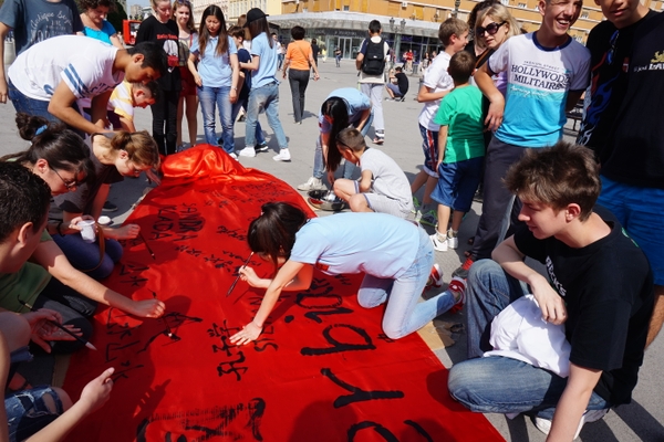 5月底,“印象中國”大型中國書畫體驗活動在諾維薩德市中心廣場成功舉行。諾維薩德大學副校長Pavle Sekerus、孔子學院中外方院長等親臨活動現場,諾維薩德市當地市民和外國游客紛紛駐足觀看,有上百人踴躍參與體驗中國書畫的魅力。不到兩個小時,20米長的紅幅上就寫滿了漢字和字母圖畫,人們以此來表達對中國人民的友好情懷及對中塞友誼的贊譽和期望。