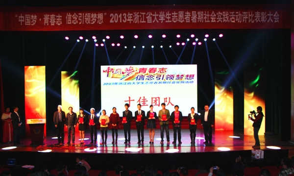 11月16日,“中國夢·青春志信念引領夢想”主題實踐活動暨2013年浙江省大學生志愿者暑期社會實踐活動評比表彰大會在浙江工商大學落下帷幕,我校法政學院優秀“大學生村官”尋訪調研團榮獲省大學生志愿者暑期社會實踐活動“十佳團隊”稱號,校團委獲2013年浙江省大學生志愿者暑期社會活動“組織工作獎”。