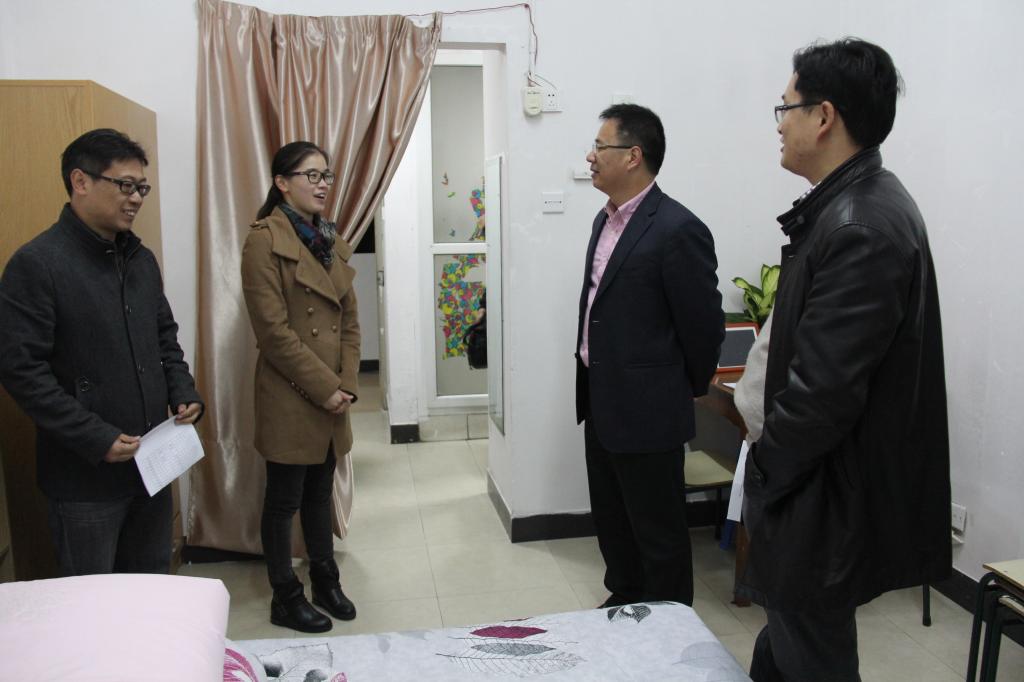 11月25日晚,校黨委副書(shū)記余杰在學(xué)工部、公管處相關(guān)負(fù)責(zé)人陪同下走訪了入住學(xué)生公寓輔導(dǎo)員寢室。