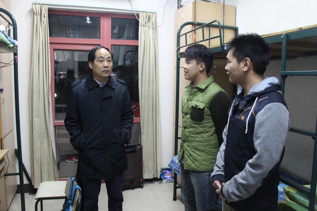 在回訪的學生寢室里,周國模詳細詢問了同學們的學習生活近況。在得知大家能夠主動認識到自身不足,積極擺正學習態度,改進學風時,周國模感到非常欣慰。周國模鼓勵同學們要不斷發揚艱苦奮斗的精神,珍惜來之不易的幸福時光,努力學習,不辜負父母和學校的期望。