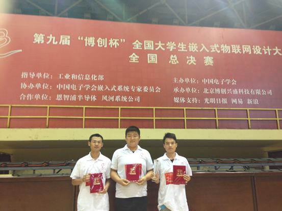 浙農(nóng)林大新聞網(wǎng)訊 近日,從第九屆“博創(chuàng)杯”全國大學(xué)生嵌入式物聯(lián)網(wǎng)設(shè)計(jì)大賽總決賽在北京落下帷幕。我校由信息工程學(xué)院祁亨年、胡軍國老師指導(dǎo),應(yīng)明順、方凱、蔡佳豐、潘功森等同學(xué)提交的“漢字規(guī)范化書寫演示與評(píng)測(cè)系統(tǒng)”在全國總決賽100支隊(duì)伍中脫穎而出,獲得全國本科組一等獎(jiǎng)的好成績。這是我校自參加該賽事以來取得的最好成績。