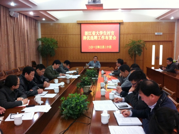 浙農林大新聞網訊 3月20日下午,學校在行政樓第一會議室召開2013年浙江省大學生村官選聘工作布置會。會議由校黨委副書記余杰主持,組織部、宣傳部、研工部、學工部、團委及各學院黨委(總支)負責人參加了會議。