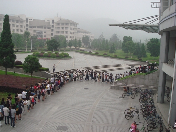 臨近期末,為了專心復(fù)習功課,很多學生6點多就到圖書館門前排隊,以便能夠在圖書館“搶”到一個好位置。早上7點多,等候圖書館開門的人就已經(jīng)沿階梯排到了百米外,猶如長龍。而圖書館館長也在同一時間出現(xiàn)在圖書館進行管理疏導,所以盡管排隊等候的大學生“源源不斷”,卻情緒穩(wěn)定、秩序井然。