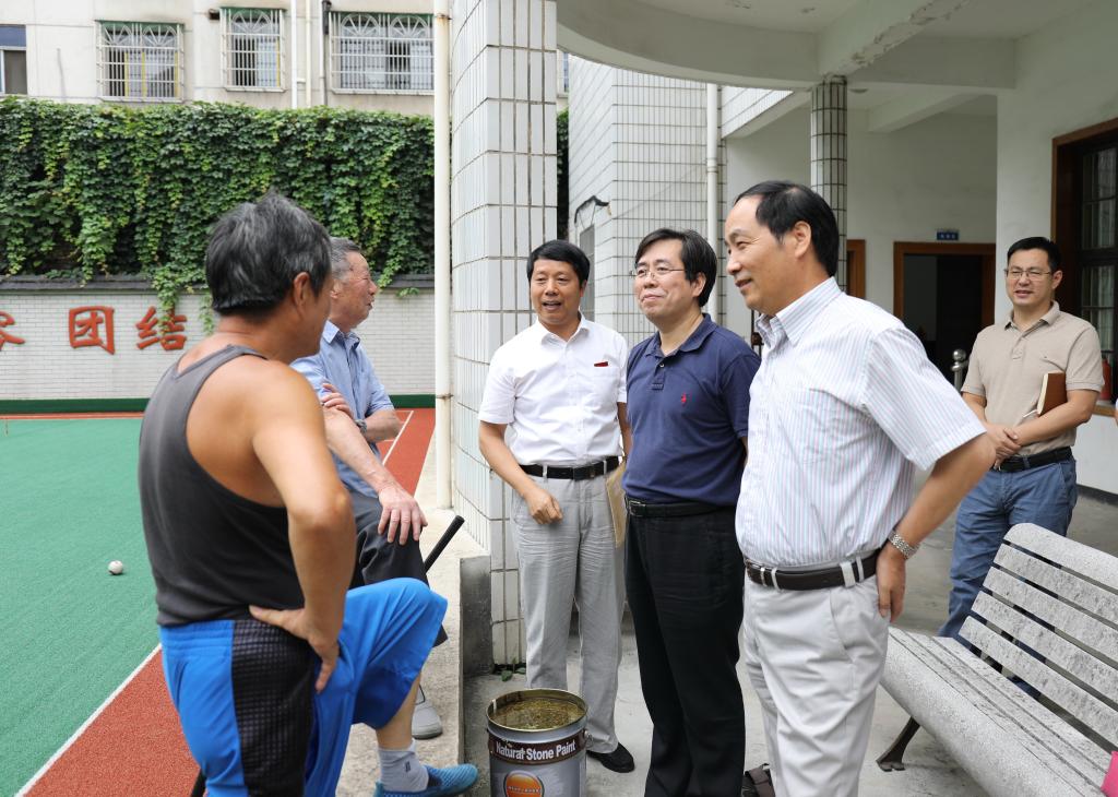 周國模、應義斌等查看了乒乓球室、棋牌室、電腦室、閱覽室、門球場、多功能活動室等老同志活動場所,與老同志一一握手,詳細了解大家的身體生活狀況,查看活動設施的建設情況。