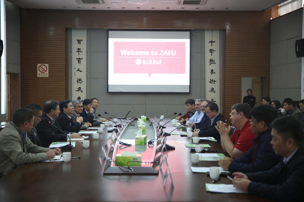 11月15日,沃爾瑪食品安全協(xié)作中心嚴(yán)志農(nóng)主任率沃爾瑪公司國(guó)際事務(wù)部主任Will Watts、華南農(nóng)業(yè)大學(xué)副校長(zhǎng)廖明教授、美國(guó)阿肯色大學(xué)Edward Pohl教授等食品安全專(zhuān)家代表團(tuán)一行來(lái)校訪(fǎng)問(wèn)。校長(zhǎng)應(yīng)義斌會(huì)見(jiàn)了來(lái)賓,校辦、國(guó)際處、農(nóng)學(xué)院、動(dòng)科學(xué)院相關(guān)負(fù)責(zé)人參加座談。