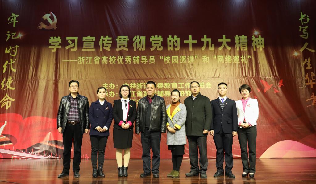 12月14下午,由中共浙江省委教育工作委員會主辦的學習宣傳貫徹黨的十九大精神——浙江省高校優秀輔導員“校園巡講”活動在我校圖書館第一報告廳舉行。校黨委副書記史永安出席活動并講話,校黨委委員、宣傳部長胡祖吉以及學工部、研工部、團委負責人,各學院分管學生工作負責人,全體輔導員和500多名學生代表參加巡講會。