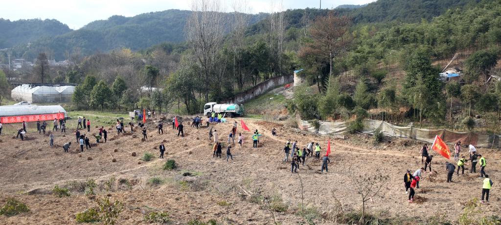 校黨政班子成員周國模、應(yīng)義斌、史永安、王自勇、金佩華、沈希、胡祖吉、童曉暉等與師生代表、消防官兵一起,在東湖校區(qū)學(xué)生公寓B9東北側(cè)添種一片新綠。大家揮鍬鏟土,扶苗填坑,踏土夯苗……,不到2小時(shí),近千株天臺(tái)鵝耳櫪、細(xì)果秤錘樹、美國山核桃、華臻等成排而立。