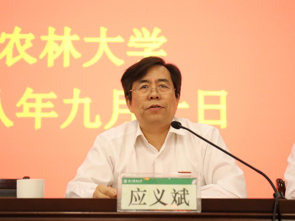 應義斌要求廣大教職工,要學為人師,行為世范,要以自己的一言一行影響學生,擔當起學生健康成長指導者和引路人;要以本為本、精進不休,本科不牢,地動山搖,廣大教師要站穩三尺講臺,更新教育教學理念,努力提升教育教學質量,為學校培養更多的優秀校友;要勇攀高峰、敏思篤行,以功成不必在我的精神境界和功成必當有我的責任擔當,主動對接國際學術前沿,面向國家和區域經濟社會重大需求,提升高水平科研創新能力,爭做國際學術前沿并行者乃至領跑者;要放大格局、謀劃未來,不斷提升新的“農林高度”,蘊育新的“農林氣度”,拓展新的“農林廣度”,挖掘新的“農林深度”,提升站位、放大格局,為學校事業發展做出新的貢獻。