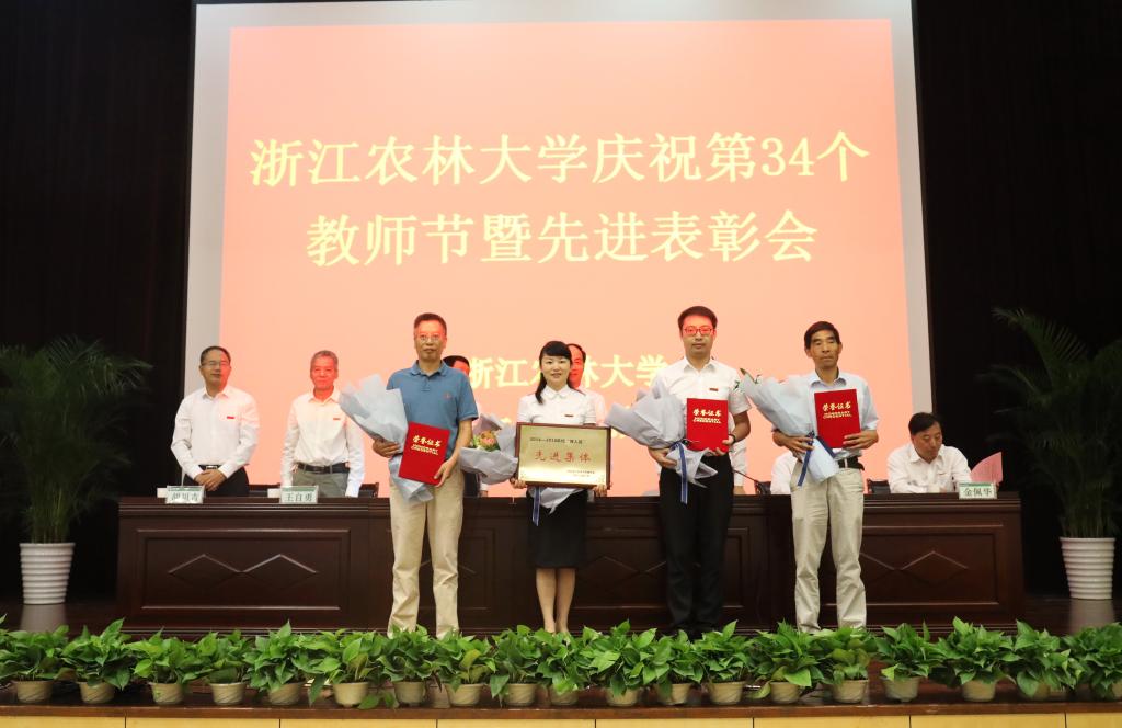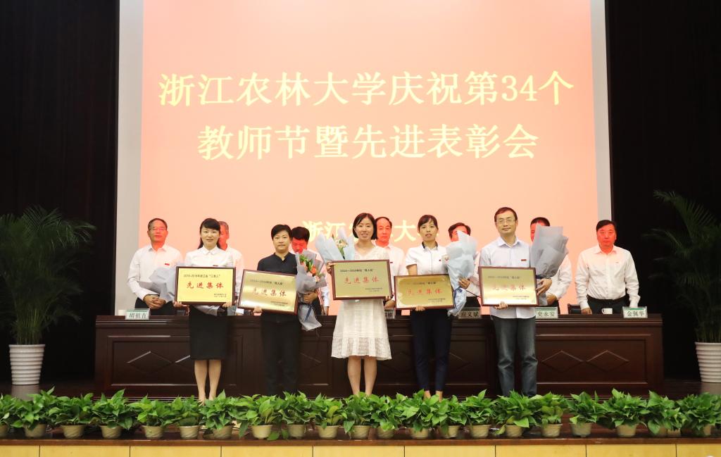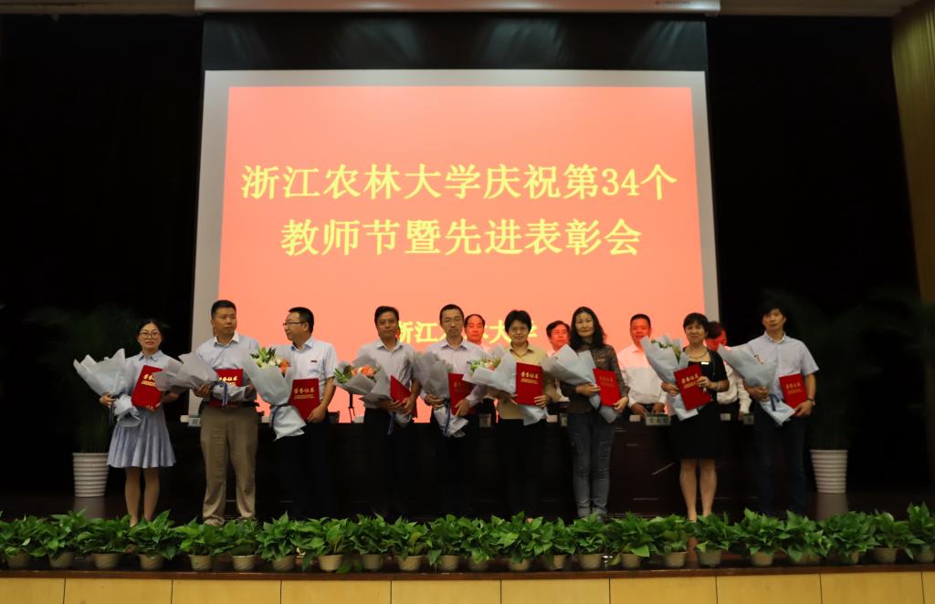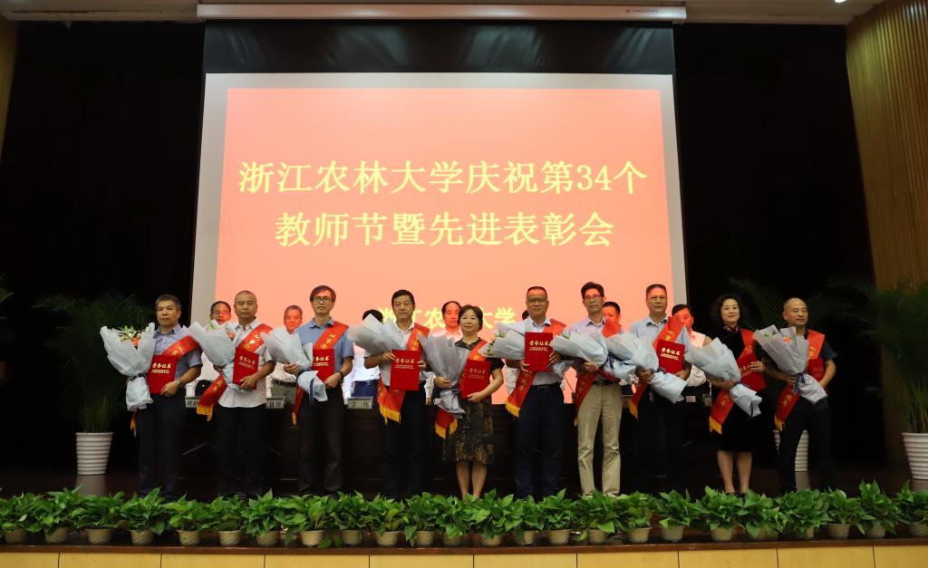 9月10日下午,學校慶祝第34個教師節暨先進表彰會在東湖校區舉行。校黨政班子成員周國模、應義斌、史永安、王自勇、金佩華、胡祖吉出席表彰大會,并為受表彰的集體和個人頒獎。會議由校黨委副書記方偉主持。