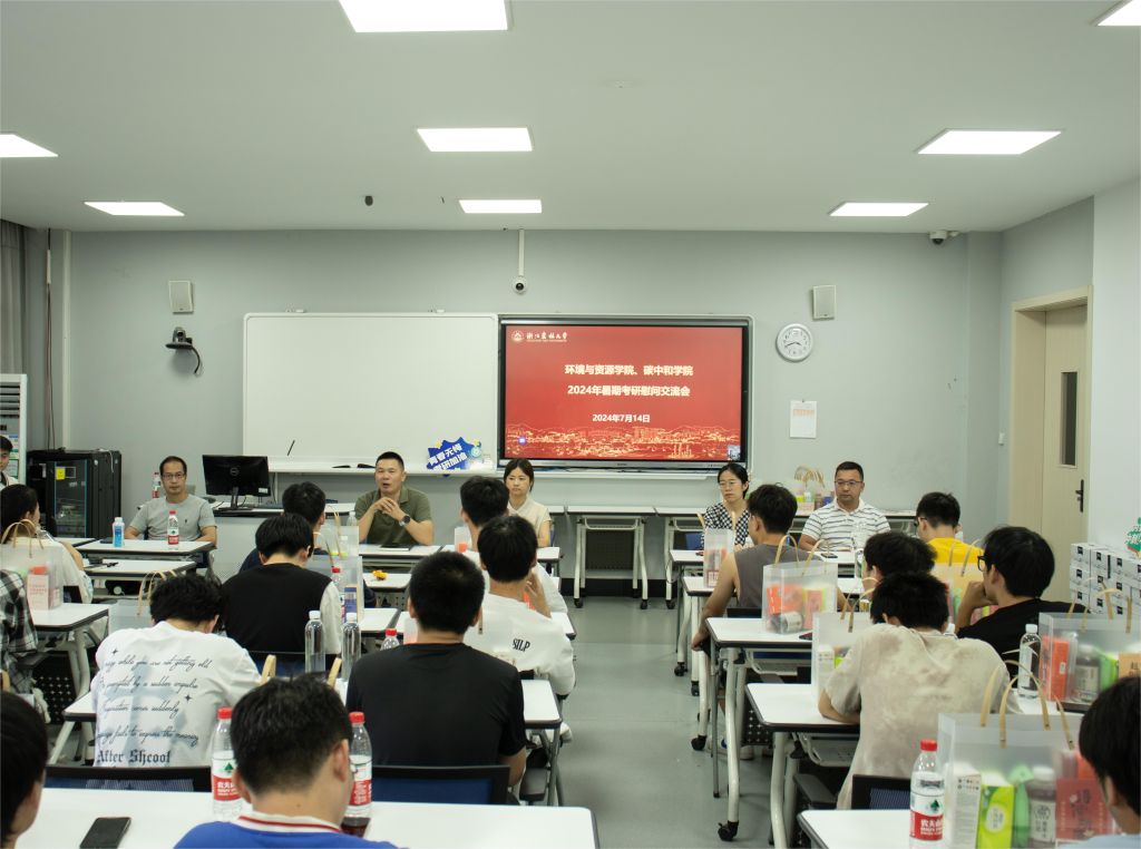 7月14日,環資院、碳中和學院開展2025屆畢業生暑期考研慰問交流活動,學院相關負責人、各學位點負責人、輔導員及2024屆暑期留校考研備考學生參加活動。