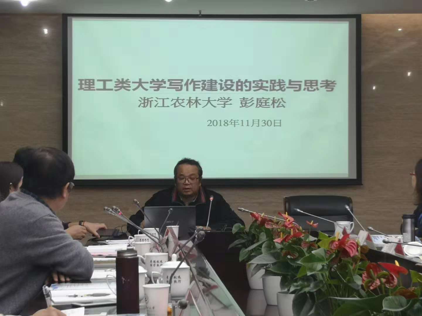 我校大學寫作課程負責人彭庭松作題為《理工類大學寫作建設的實踐與思考》的發言。彭庭松結合我校大學寫作課程開設的實踐,分析了目前大學寫作存在的困境,并針對問題提出了以寫促能、情懷推動、師資多元等解決途徑。發言引起與會者深入廣泛的討論。