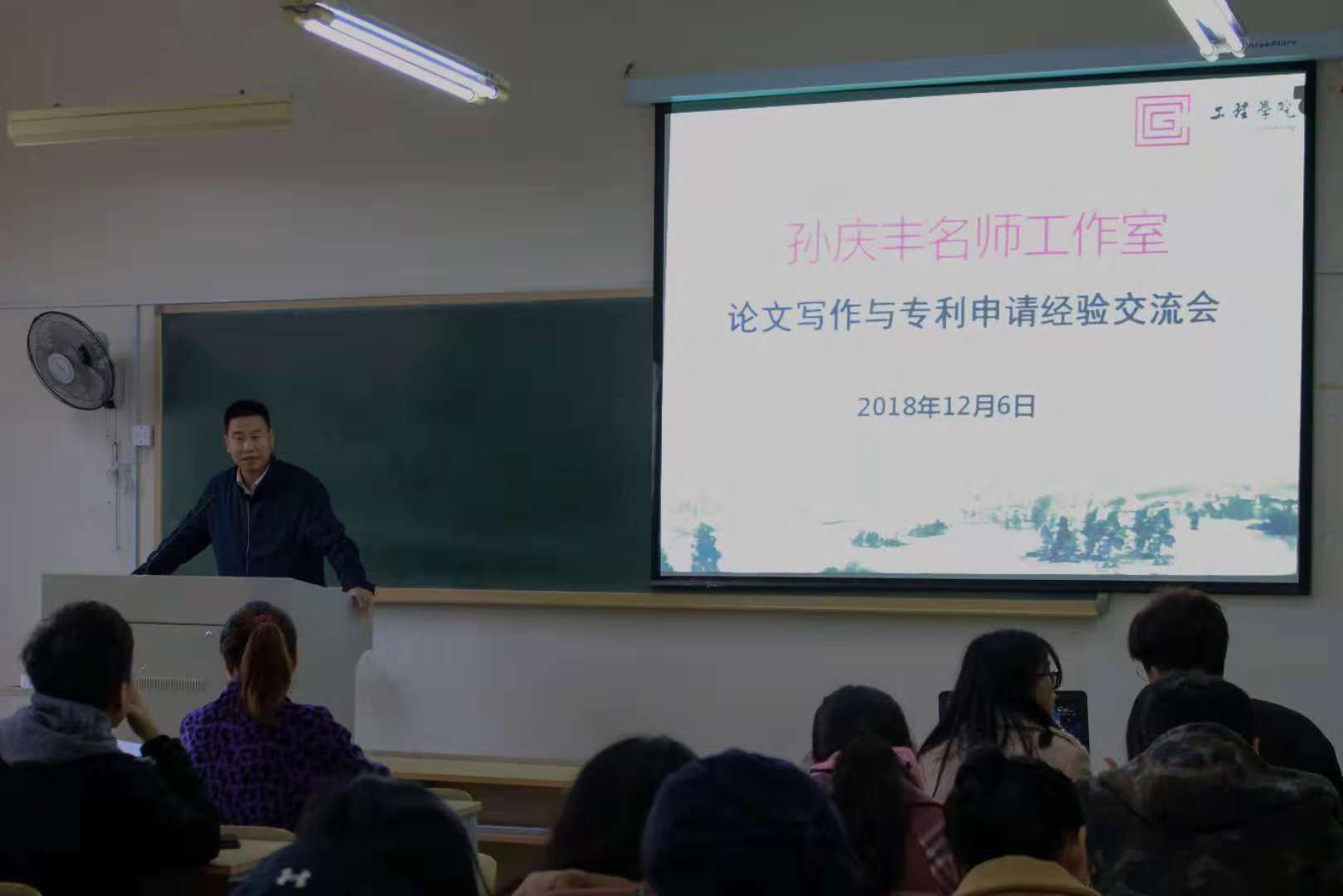 12月6日,孫慶豐名師工作室“名師講堂”第一講在教一411開講,孫慶豐老師作了題為《科研論文的寫作和專利申請》的報告。學院師生代表以及“東湖杯”所有參賽團隊參加了此次名師講堂。
