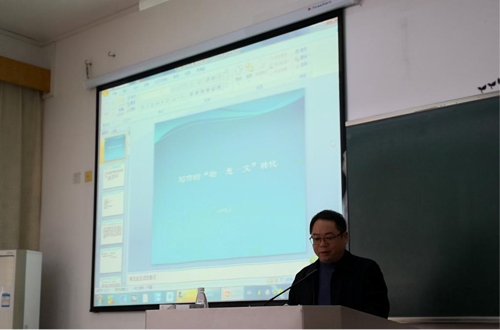 趙教授認為寫作就是“物-意-文”的轉化過程,他以某學校招聘人員,要求應聘者撰寫公務公文的事例為引子,從“物-意-文”轉化、“物-意”的轉化、“意-文”轉化、錘煉途徑等四個方面展開了講解。