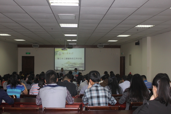 9月23日上午,第二十二期輔導(dǎo)員工作沙龍?jiān)诨顒?dòng)中心視聽室204舉行。沙龍由學(xué)工部部長繆魯加主持,創(chuàng)業(yè)處、團(tuán)委負(fù)責(zé)人,各學(xué)院分管學(xué)生工作負(fù)責(zé)人、輔導(dǎo)員,學(xué)工部全體人員80余人參加了沙龍。