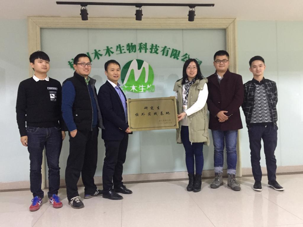 近日,研究生院相關負責人一行到杭州木木生物科技有限公司,為公司負責人、我校研究生畢業(yè)生胡重九、陳相濤頒發(fā)研究生就業(yè)創(chuàng)業(yè)導師聘書,向公司授牌“研究生校外實踐基地”。