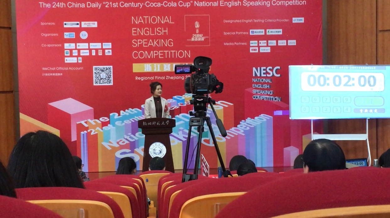 第二十四屆“21世紀?可口可樂杯”全國大學生英語演講賽浙江賽區決賽于11月24日在杭州師范大學舉行。我校英語161班的上官玲玉同學在方薇和章潔帆老師的指導下,以睿智的語言、沉著的風格、機敏的反應贏得了評委的好評和觀眾的喝彩,從來自全省30多所高校的40名選手中脫穎而出,獲得了二等獎的好成績。