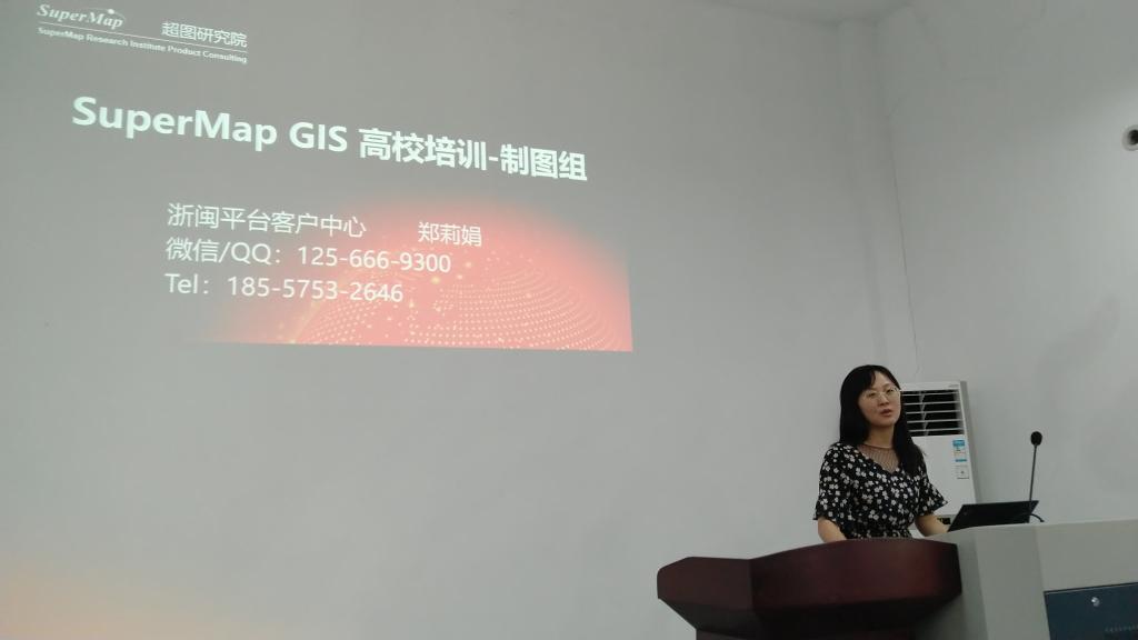 本次培訓由來自北京超圖軟件股份有限公司的鄭莉娟老師給同學們講解。鄭老師給同學們介紹了GIS大賽的基本流程以及點明了比賽注意事項,對桌面制圖組、WEB開發組進行有針對性的培訓,內容包括SuperMap9D系列產品體系介紹、SuperMap GIS基礎概念介紹、桌面產品SuperMap iDesktop 9D使用入門介紹、SuperMap iClient3D 9D for WebGL。