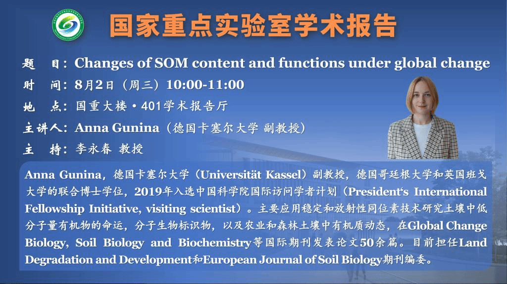 講座預(yù)告:Changes of SOM content and functions under global change