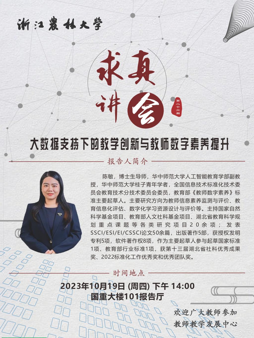 講座預告:求真講會——大數據支持下的教學創新與教師數字素養提升