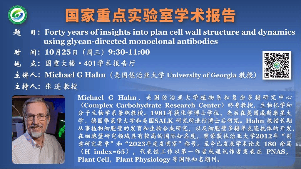 講座預告:Forty years of insights into plan cell wall structure and dynamics using glycan-directed monoclonal antibodies