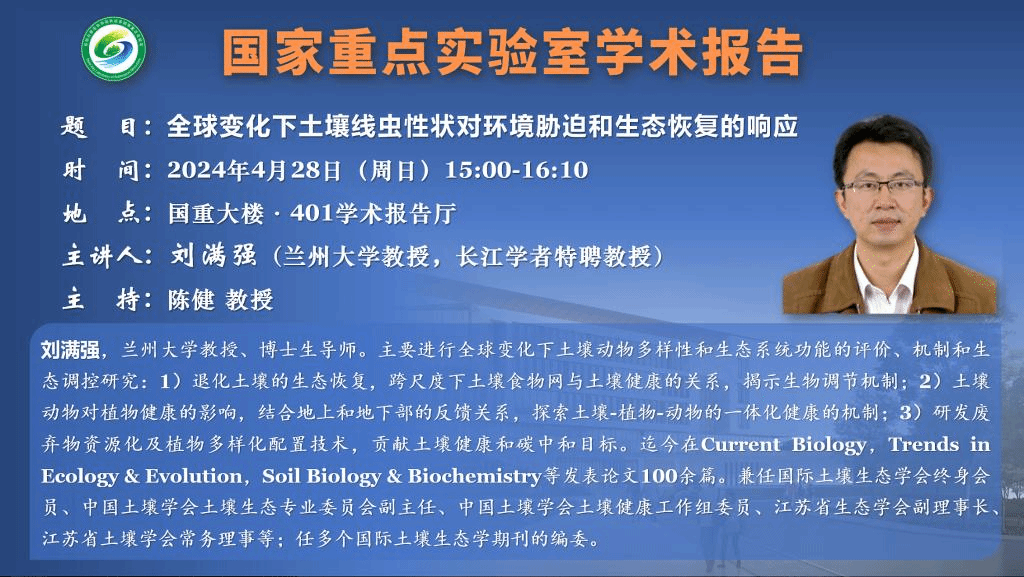 講座預(yù)告:全球變化下土壤線蟲性狀對環(huán)境脅迫和生態(tài)恢復(fù)的響應(yīng)