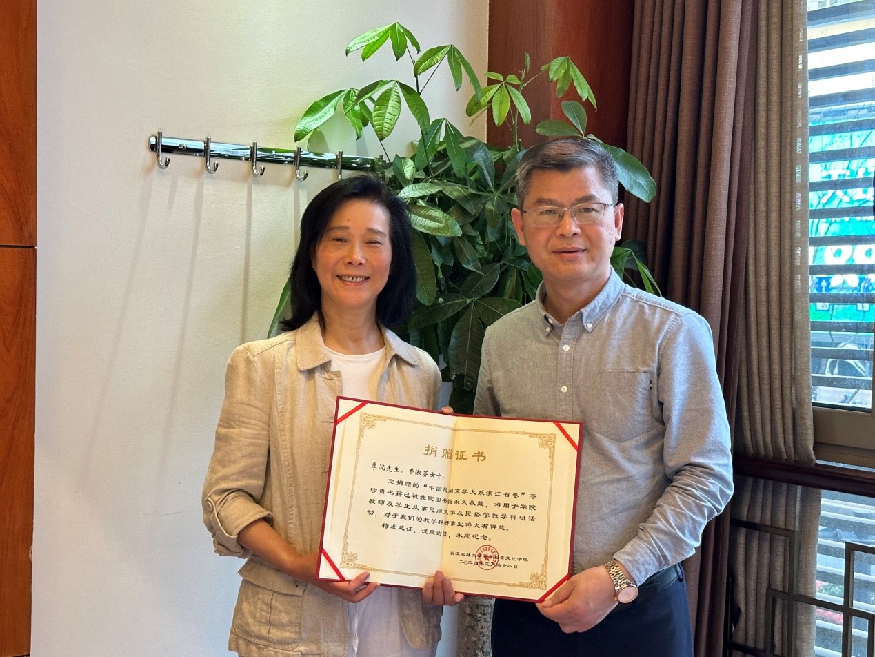 4月1日,茶文化學(xué)科專業(yè)負(fù)責(zé)人周新華代表學(xué)院赴杭州向季沉、費(fèi)淑芬伉儷的捐贈表示衷心感謝,并向其子女季吟女士頒發(fā)了捐贈證書和浙江農(nóng)林大學(xué)文創(chuàng)紀(jì)念品。