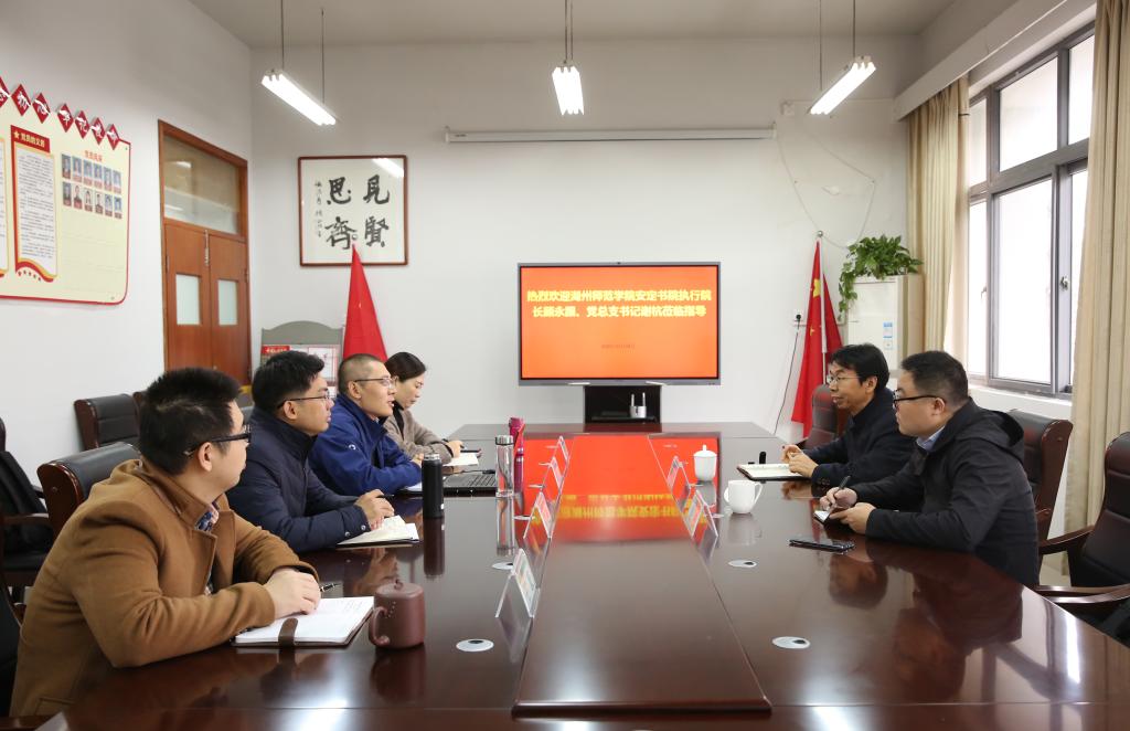 近日,湖州師范學(xué)院安定書院執(zhí)行院長顧永跟、黨總支書記謝杭一行來集賢學(xué)院調(diào)研創(chuàng)新創(chuàng)業(yè)教育工作,集賢學(xué)院領(lǐng)導(dǎo)班子及創(chuàng)業(yè)實(shí)訓(xùn)中心負(fù)責(zé)人參與交流座談。